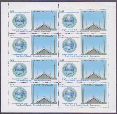 On 18th meeting of the council of head of state of Shabghai Cooperation Organization Qingdao Summit, 2018, the commemorative postage stamp of Rs. 10/- denominations being issued by Pakistan Post on June 09, 2018.